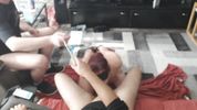 Двое друзей связали подругу и заставили сосать хуй с завязанными глазами, шлепая по жопе