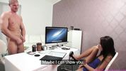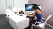 Пикаперы разводят секретаршу на секс в приемной, пока ждут босса и снимают трах на камеру