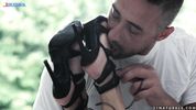 Брюнетка надела блядские босоножки, чтобы возбудить своего фут-фетишиста