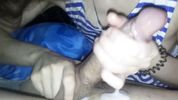 Милая девушка делает парню минет. Пока не особо умеет, но очень старается