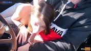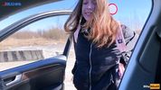 Молоденькая автостопщица хорошо заработала, показав сисечки и отсосав незнакомцу