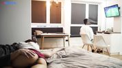 Описание:Два брата решили позырить по телевизору футбик, а их мужскую компанию разбавила тёлочка младшенького. Вначале малыха сидела рядышком с парнем, а потом втихую перебралась на кровать к его старшему брату. И всё потому, что у старшего - большой крепкий хуй, а младший – такой задрочуга, что и не замечает, как его тёлка блядует у него прямо под носом. Шлюшка справилась меньше, чем за 10 минут: и подрочила, и пососала, и на хую покаталась и дала раком. Ну и что, пусть она и блядища, но зато хитрая и умелая девка, а не лохушка!