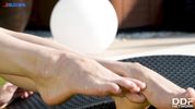Гибкая развратная блонди расслабляется у бассейна мастурбацией писечки