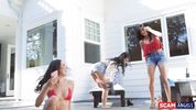 Три тёлки выебли мужика, чтобы его наказать и заставить дать денег