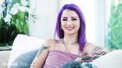 Кастинг и жёсткая ебля в два хуя синеволосой татуированной дуры