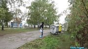 Описание:Чувак увидел на улице одиноко стоящую тёлку и решил подкатить к ней с разводом на показать сиськи. Девка отказалась от соточки евро, но за несколько сотен моментально оголила свою скромную двоечку и даже дала их полапать. У чувака в кошельке было ещё достаточно евро, чтобы соблазнить девку на жаркий минет. Ну а на остаток парняга просто загнул сучку раком и отшпилил её без резинки, слив кончу в её ненакрашенный рот. Все бабы – шлюхи, главное – иметь денежки, и поимеешь любую!