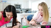 Описание:Скоро День Валентина и две сладких милашки решили побаловать бойфрендов, cделав им красивые кольца для хуя. Но эти кольца надо на чём-то померить, вот они и позвали на помощь брата одного из подружек. Сестра показала брату сисяшки, чтобы вызвать эрекцию, а узкоглазка стала мерить кольцо на вставшем хрене парнишки. Но стояк брата так привлёк пошлых девчулек, что они стали его лапать и чмокать на радость братюне. Который просто долго балдел, а потом понял свой шанс - и пошёл драть в пиздёнку и сестру свою, и узкоглазую сучку-подружку.