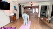 Описание:Молодая мачеха с утра занимается йогой, а бородатый сын её мужа с удовольствием за ней наблюдает. У милахи от недоёба давно уж чесалась пизда и сегодня она вдруг решилась на опасную шалость. Попросив парня помочь ей в растяжке, тёлка стала касаться его ножкой и жопой, чем привела хуй бородатого в полную боевую готовность. А вскоре парочка бесстыже еблась на полу, наставляя рога старому папке и мужу.