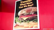 Босс бургерной так перевозбудился на сиськи, что круто нализал и отжарил свою продавщицу в пиздень