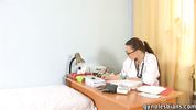 Описание:Девушка пришла на приём к гинекологу и даже не подозревала чем все может закончиться. Все как должно быть, она разделась, сняла чулки и врач приступила к осмотру. Гинеколог попросила стать раком, что уже смутило молодую девушку, но чего не сделаешь ради здоровья. Малышке так понравились ласки и она попросила продолжить смелую врачиху, поласкав её киску в разных позах. Закончилось все трахом в позе раком, сверху и снизу.